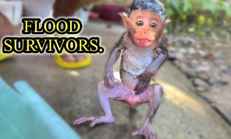 After four long days of struggling through muddy water, chaos, and fear, little Yumi and baby Mimi finally reached a moment they desperately needed… a warm, safe bath. For days, these tiny monkeys had survived the devastating Aceh flood—clinging to branches, hiding in any dry corner they could find, and waiting for help without fully understanding what was happening around them. Their fur was soaked, sticky, and heavy; their small bodies were tired; and their eyes showed exhaustion that no baby should ever carry.