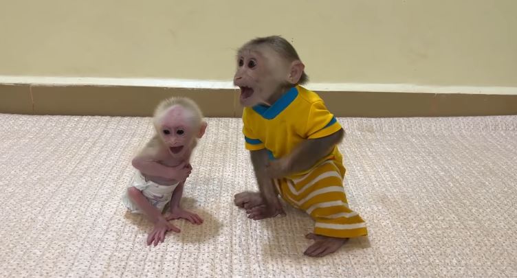 In the quiet afternoon at Cute Monkey Home, a simple meal suddenly turned into a tense and emotional moment. Mom prepared a small bowl of boiled potatoes, carefully cutting them into soft pieces so Chichi and Pavpav could eat together. At first, everything looked normal. Pavpav sat calmly, eyes bright with excitement, reaching out eagerly for the food. But Chichi’s mood was completely different.