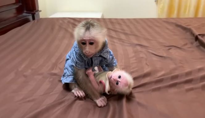 ChiChi’s shoulders relaxed. Her shouting softened into happy little sounds as she reached out, reassured at last. Pavpav gave one final joyful jump, not as high this time, but closer—right where she needed him. In that simple moment of shouting, jumping, and understanding, their bond showed clearly. Sometimes “please” doesn’t need words to be answered. Sometimes it just needs to be loud enough to come from the heart.