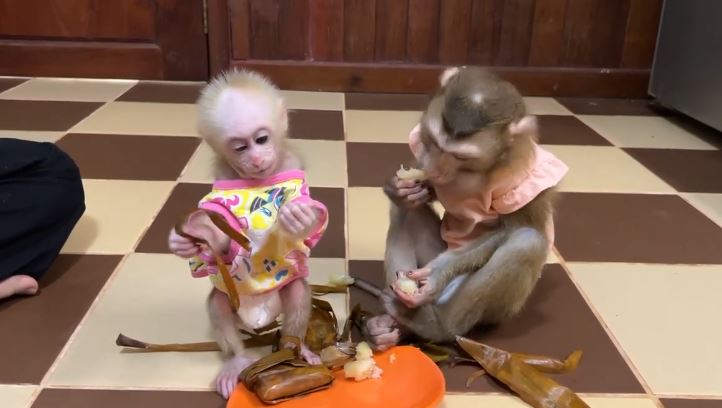 In the warm and lively yard of Cute Monkey Home, the morning sunshine poured softly through the trees while the little monkeys waited for their favorite moment of the day — snack time. Among them, Chichi was already full of excitement. Her tiny belly rumbled, and her curious eyes stayed locked on Jenny, who was preparing a bowl of fresh fruit slices and milk. Chichi didn’t want to wait like the others. She had her own funny plan to get attention.