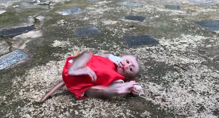 Morning at Cute Monkey Home started quietly, but it didn’t stay calm for long. Little Linda woke up with a storm in her heart. As soon as Mom gently set her down and asked her to walk, Linda’s face changed. Her tiny eyes filled with tears, her mouth trembled, and suddenly she threw herself backward onto the floor. Thump! The dramatic tantrum began.