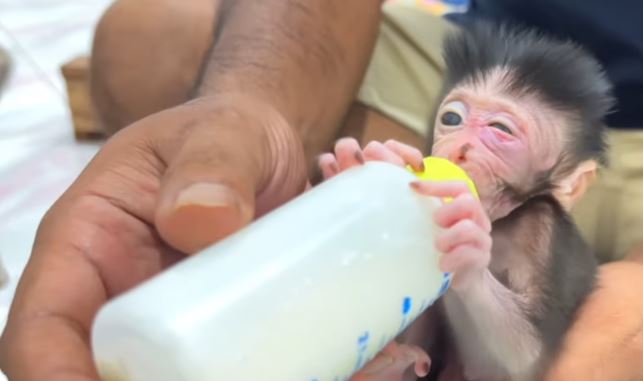 Tonight, the shelter is quiet… but not completely. In the soft darkness, a tiny sound keeps echoing—little whimpers, soft cries, the heartbreaking voice of an orphaned baby monkey who still dreams of a mother he can no longer feel. Wrapped in a warm blanket, his tiny chest rises and falls, but every few minutes, he lets out a sad, trembling cry… as if calling, “Mama… where are you?”