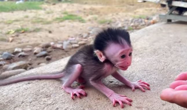 She looked around for help, hoping someone would pick her up and save her from the uncomfortable wet feeling. She lifted her tiny arms, asking for comfort. Her soft fur was damp, and her little face turned red from crying. Even while she cried, she still looked unbelievably adorable—her expression so innocent, so helpless.