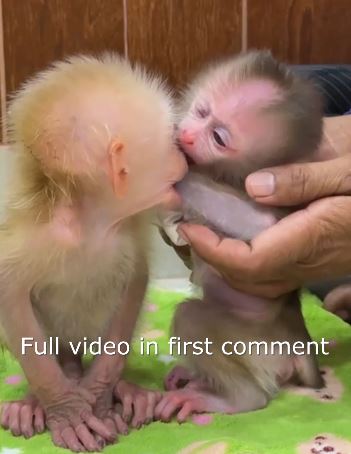 In the peaceful corner of the house, the poor baby monkey showed his sweet affection in the most innocent way. With tiny steps and a soft heart, he rushed toward TanTan, hoping to share a little kiss and get some love in return. His eyes were filled with excitement and joy, his little lips reaching forward as if to say, “I love you, brother.” But sadly, TanTan, the spoiled one, turned his head away, acting uninterested and proud.