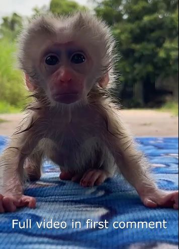 The poor baby monkey looked so small and fragile as he tried to take his first steps alone. His eyes were filled with sadness and confusion, missing the comfort and support of his mother. Every step he took showed both fear and bravery. The baby monkey seemed to understand that learning to walk was something he had to do by himself, even though his heart was lonely. The way he moved slowly, balancing his tiny body, made everyone watching feel sympathy for his struggle.