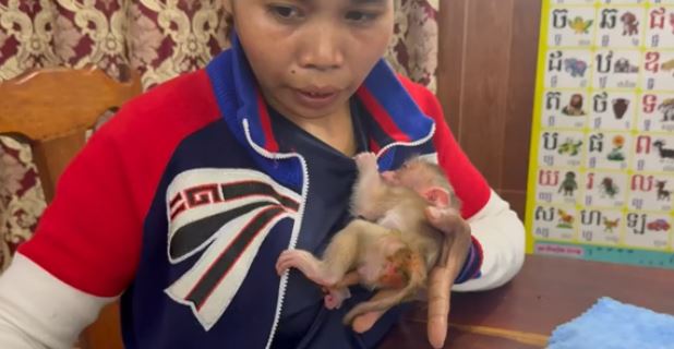 In a small quiet corner of the house, the poor newborn baby lay restlessly on a soft towel. His tiny face looked pale, and his little belly moved uncomfortably. The baby had gotten d-iarrhea, and every time he tried to move, he cried in pain. His mom, seeing her beloved little one suffering, felt her heart break into pieces. She held him close, whispering gentle words, hoping her warmth could ease his pain even a little.