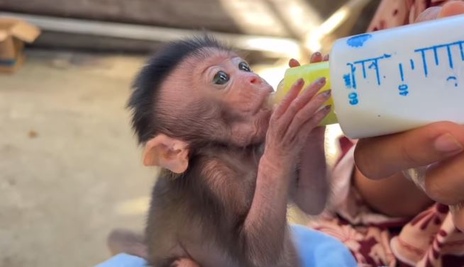 Slowly, with patience and soft whispers, she began to trust. She started leaning her head on my palm, blinking slowly the way baby monkeys do when they feel secure. When I stroked her little back, she stopped trembling for the first time. When I offered her warm milk, she held my hand while drinking, as if afraid I might let go.