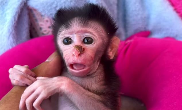 The morning was quiet, but the tiny cries of a newborn baby monkey broke the stillness. His voice was so small, so fragile, yet filled with a grief far too big for someone his size. Wrapped in a soft blanket, his eyes kept searching left and right, as if he was desperately trying to find a familiar warmth he would never feel again. His tiny lips trembled as he squeaked the only thing he knew — a call for his mother.